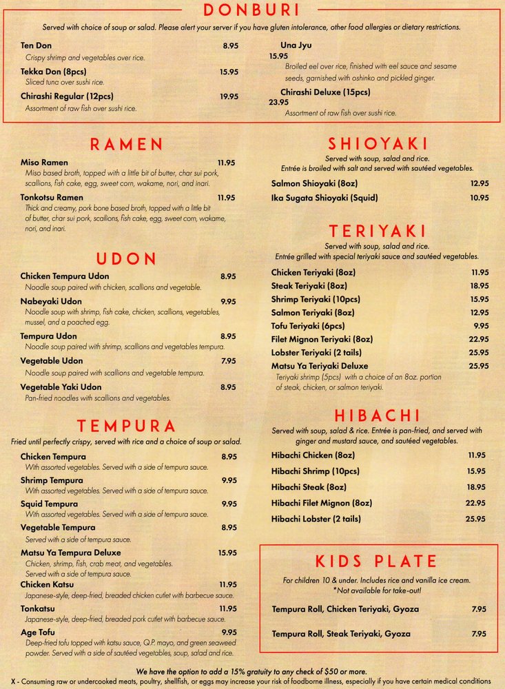Matsu Ya Sushi & Grill, located in Stevens Point, WI, offers a delightful experience for sushi aficionados. With a diverse menu that includes vegetarian options and traditional Japanese dishes like teriyaki tofu and steak hibachi, this Asian-owned establishment caters to all palates. Customers commend the prompt service and high-quality sushi, with one reviewer praising the inventive yet classic flavors. The restaurant provides ample seating, including outdoor options, and boasts a friendly atmosphere with attentive staff. Menu descriptions are detailed, ensuring a flavorful dining experience. Matsu Ya's affordable prices, swift service, and delicious offerings make it a standout choice for Japanese cuisine in central Wisconsin. Whether indulging in California rolls or exploring their wide range of sushi options, Matsu Ya Sushi & Grill promises a satisfying and memorable meal.